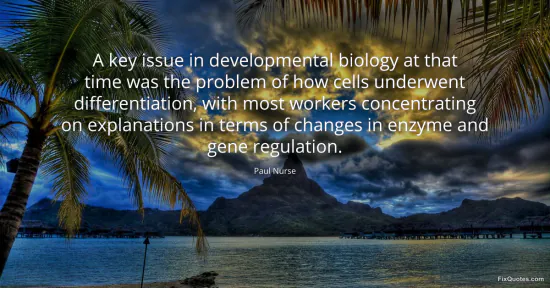 Nurse, Paul. (2026, January 15). A key issue in developmental biology at that time was the problem of how cells underwent differentiation, with most workers concentrating on explanations in terms of changes in enzyme and gene regulation. FixQuotes. https://fixquotes.com/quotes/a-key-issue-in-developmental-biology-at-that-time-165606/