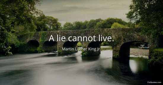 A lie cannot live is King at his most deceptively spare: a one-sentence theology of truth with the cadence of a threat. The line works because it treats falsehood not as a clever tactic but as a fragile organism. Lies require oxygen - repetition, intimidation, complicity, the constant labor of shoring up a story that reality keeps eroding. By contrast, truth is framed as self-sustaining. King collapses the moral and the practical into the same claim: injustice is not only wrong, its foundation is unstable.