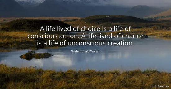 Walsch, Neale Donald. (2026, January 17). A life lived of choice is a life of conscious action. A life lived of chance is a life of unconscious creation. FixQuotes. https://fixquotes.com/quotes/a-life-lived-of-choice-is-a-life-of-conscious-70331/