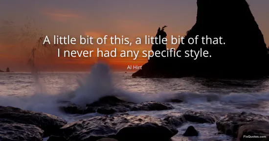 Hirt, Al. (2026, January 16). A little bit of this, a little bit of that. I never had any specific style. FixQuotes. https://fixquotes.com/quotes/a-little-bit-of-this-a-little-bit-of-that-i-never-104010/