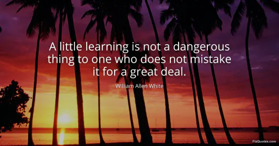 White, William Allen. (2026, January 16). A little learning is not a dangerous thing to one who does not mistake it for a great deal. FixQuotes. https://fixquotes.com/quotes/a-little-learning-is-not-a-dangerous-thing-to-one-85416/