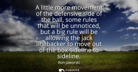 "A little more movement of the defensive side of the ball, some rules that will be unnoticed, but a big rule will be allowing the jack linebacker to move out of the box sideline to sideline"