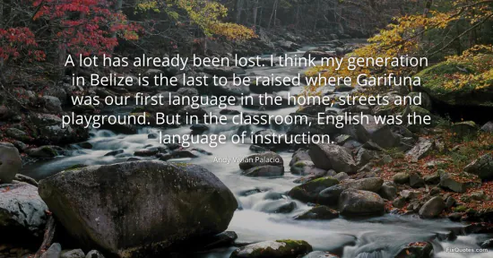 Palacio, Andy Vivian. (2026, February 16). A lot has already been lost. I think my generation in Belize is the last to be raised where Garifuna was our first language in the home, streets and playground. But in the classroom, English was the language of instruction. FixQuotes. https://fixquotes.com/quotes/a-lot-has-already-been-lost-i-think-my-generation-185534/