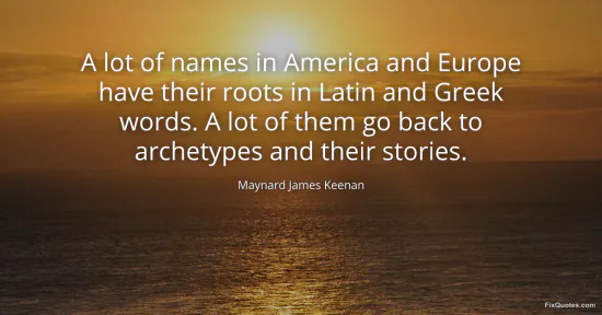 Keenan, Maynard James. (2026, January 16). A lot of names in America and Europe have their roots in Latin and Greek words. A lot of them go back to archetypes and their stories. FixQuotes. https://fixquotes.com/quotes/a-lot-of-names-in-america-and-europe-have-their-93327/