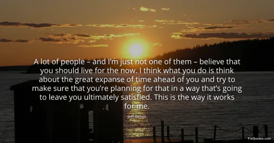 Bezos, Jeff. "A lot of people – and I’m just not one of them – believe that you should live for the now. I think what you do is think about the great expanse of time ahead of you and try to make sure that you’re planning for that in a way that’s going to leave you ultimately satisfied. This is the way it works for me." FixQuotes. March 25, 2026. https://fixquotes.com/quotes/a-lot-of-people-and-im-just-not-one-of-them-186389/.