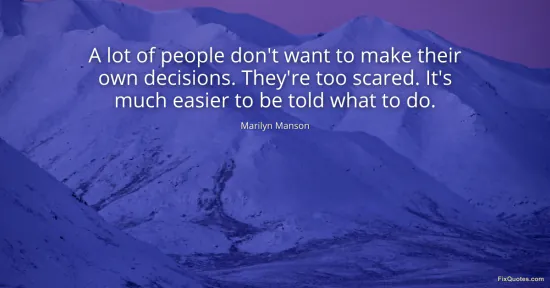 Manson, Marilyn. (2026, January 18). A lot of people don't want to make their own decisions. They're too scared. It's much easier to be told what to do. FixQuotes. https://fixquotes.com/quotes/a-lot-of-people-dont-want-to-make-their-own-717/