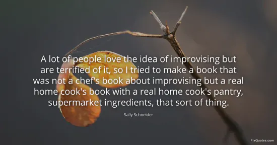 Schneider, Sally. (2026, January 15). A lot of people love the idea of improvising but are terrified of it, so I tried to make a book that was not a chef's book about improvising but a real home cook's book with a real home cook's pantry, supermarket ingredients, that sort of thing. FixQuotes. https://fixquotes.com/quotes/a-lot-of-people-love-the-idea-of-improvising-but-149996/