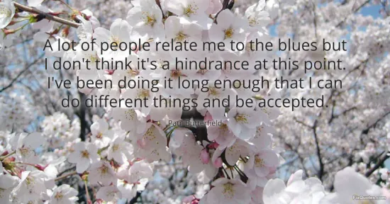 "A lot of people relate me to the blues but I don't think it's a hindrance at this point. I've been doing it long enough that I can do different things and be accepted." FixQuotes, 16 Jan. 2026, https://fixquotes.com/quotes/a-lot-of-people-relate-me-to-the-blues-but-i-dont-124400/. Accessed 12 Feb. 2026.