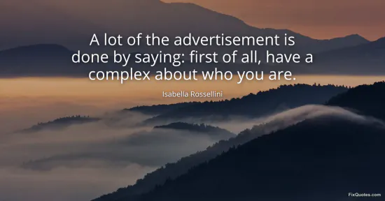 Rossellini, Isabella. (2026, January 18). A lot of the advertisement is done by saying: first of all, have a complex about who you are. FixQuotes. https://fixquotes.com/quotes/a-lot-of-the-advertisement-is-done-by-saying-21379/