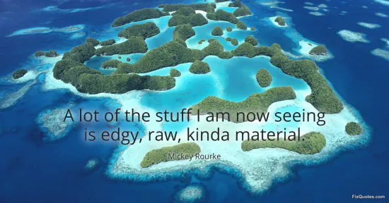 Rourke, Mickey. (2026, February 18). A lot of the stuff I am now seeing is edgy, raw, kinda material. FixQuotes. https://fixquotes.com/quotes/a-lot-of-the-stuff-i-am-now-seeing-is-edgy-raw-64794/