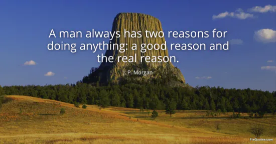 Morgan, J. P. (2026, January 15). A man always has two reasons for doing anything: a good reason and the real reason. FixQuotes. https://fixquotes.com/quotes/a-man-always-has-two-reasons-for-doing-anything-a-126984/