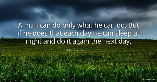 Schweitzer, Albert. (2026, January 15). A man can do only what he can do. But if he does that each day he can sleep at night and do it again the next day. FixQuotes. https://fixquotes.com/quotes/a-man-can-do-only-what-he-can-do-but-if-he-does-29628/