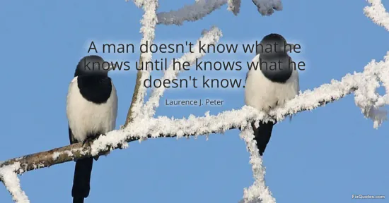 Peter, Laurence J. (2026, January 15). A man doesn't know what he knows until he knows what he doesn't know. FixQuotes. https://fixquotes.com/quotes/a-man-doesnt-know-what-he-knows-until-he-knows-80986/