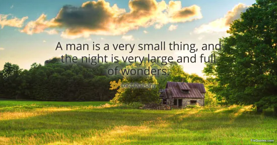 "A man is a very small thing, and the night is very large and full of wonders." FixQuotes, 15 Jan. 2026, https://fixquotes.com/quotes/a-man-is-a-very-small-thing-and-the-night-is-very-128372/. Accessed 21 Feb. 2026.