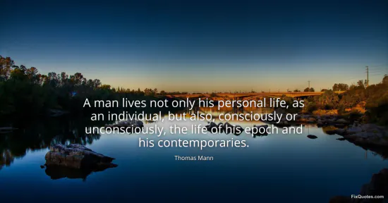 Mann, Thomas. (2026, January 18). A man lives not only his personal life, as an individual, but also, consciously or unconsciously, the life of his epoch and his contemporaries. FixQuotes. https://fixquotes.com/quotes/a-man-lives-not-only-his-personal-life-as-an-3925/