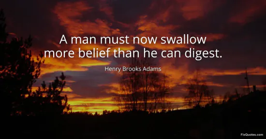 Adams, Henry Brooks. "A man must now swallow more belief than he can digest." FixQuotes. January 15, 2026. https://fixquotes.com/quotes/a-man-must-now-swallow-more-belief-than-he-can-162614/.