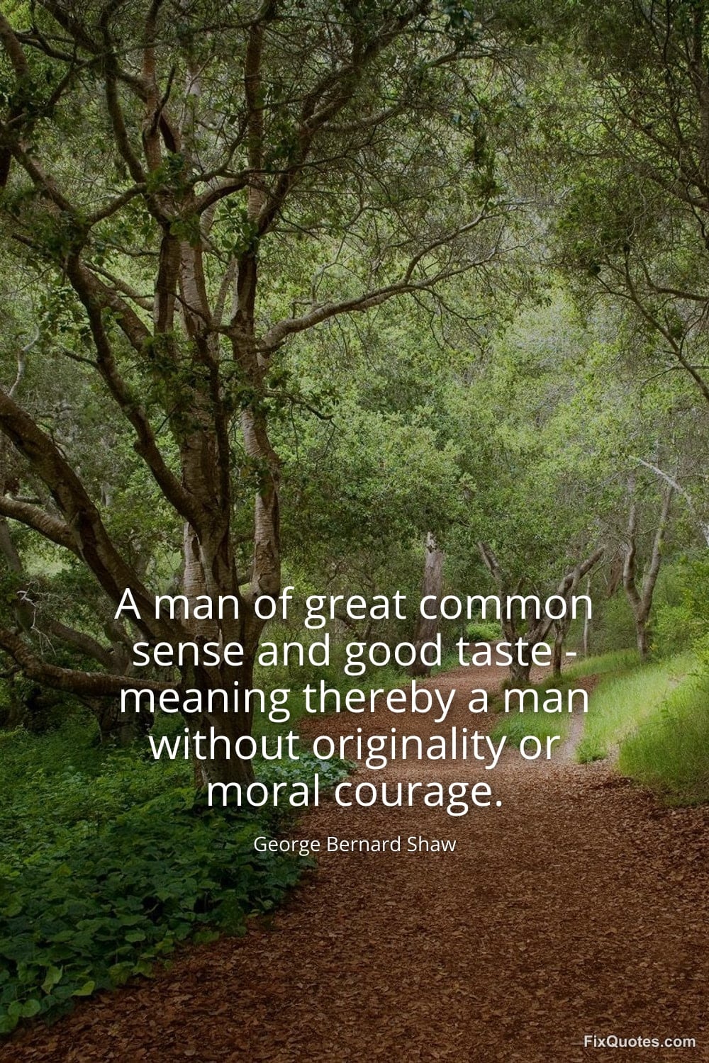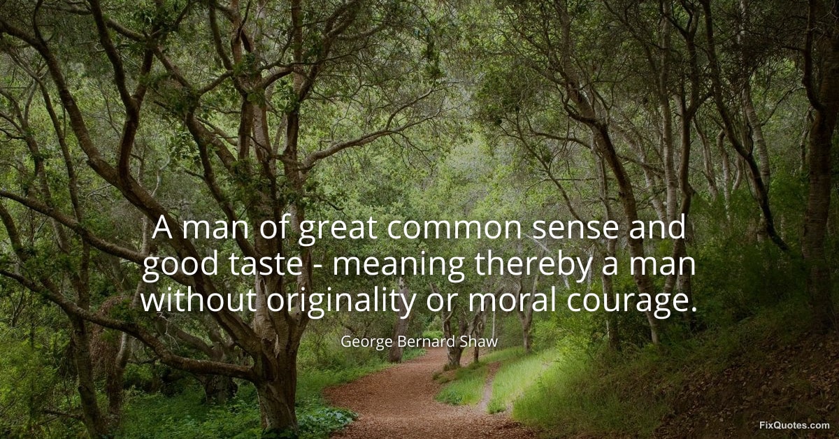 Shaw, George Bernard. "A man of great common sense and good taste - meaning thereby a man without originality or moral courage." FixQuotes. January 18, 2026. https://fixquotes.com/quotes/a-man-of-great-common-sense-and-good-taste-14004/.