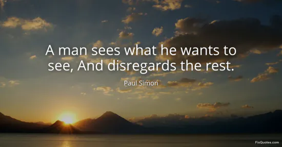 Simon, Paul. "A man sees what he wants to see, And disregards the rest." FixQuotes. January 13, 2026. https://fixquotes.com/quotes/a-man-sees-what-he-wants-to-see-and-disregards-108907/.