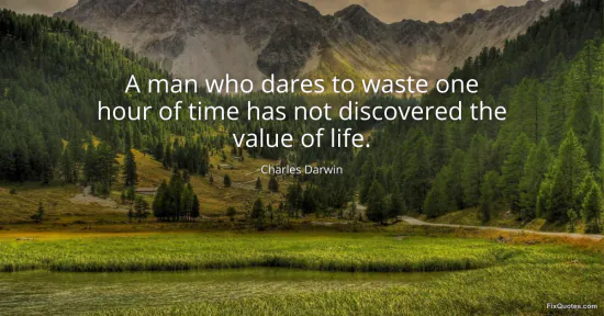 Darwin, Charles. "A man who dares to waste one hour of time has not discovered the value of life." FixQuotes. January 15, 2026. https://fixquotes.com/quotes/a-man-who-dares-to-waste-one-hour-of-time-has-not-30475/.