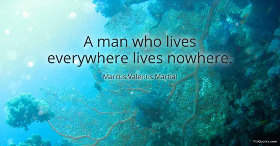 Martial, Marcus Valerius. (n.d.). A man who lives everywhere lives nowhere. FixQuotes. https://fixquotes.com/quotes/a-man-who-lives-everywhere-lives-nowhere-119959/