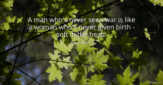 Platonov, Andrei. (2026, January 18). A man who's never seen war is like a woman who's never given birth - soft in the head. FixQuotes. https://fixquotes.com/quotes/a-man-whos-never-seen-war-is-like-a-woman-whos-15320/