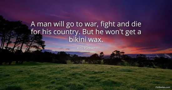 Rudner, Rita. (2026, January 15). A man will go to war, fight and die for his country. But he won't get a bikini wax. FixQuotes. https://fixquotes.com/quotes/a-man-will-go-to-war-fight-and-die-for-his-151228/