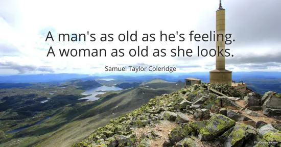 Coleridge, Samuel Taylor. (2026, January 14). A man's as old as he's feeling. A woman as old as she looks. FixQuotes. https://fixquotes.com/quotes/a-mans-as-old-as-hes-feeling-a-woman-as-old-as-123032/