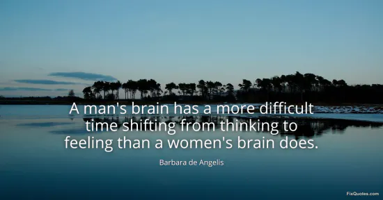 Angelis, Barbara de. (2026, January 15). A man's brain has a more difficult time shifting from thinking to feeling than a women's brain does. FixQuotes. https://fixquotes.com/quotes/a-mans-brain-has-a-more-difficult-time-shifting-126867/