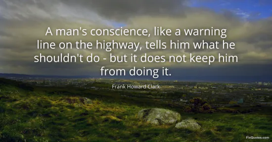 Clark, Frank Howard. "A man's conscience, like a warning line on the highway, tells him what he shouldn't do - but it does not keep him from doing it." FixQuotes. January 17, 2026. https://fixquotes.com/quotes/a-mans-conscience-like-a-warning-line-on-the-66715/.