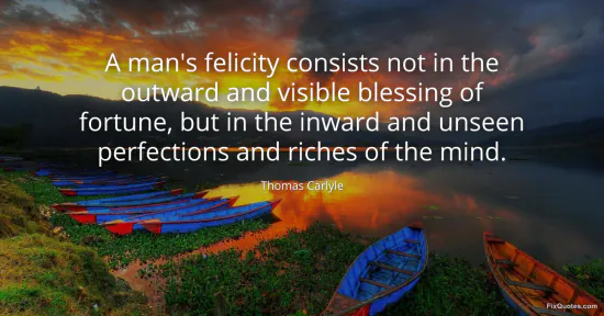 Carlyle, Thomas. "A man's felicity consists not in the outward and visible blessing of fortune, but in the inward and unseen perfections and riches of the mind." FixQuotes. January 17, 2026. https://fixquotes.com/quotes/a-mans-felicity-consists-not-in-the-outward-and-34562/.