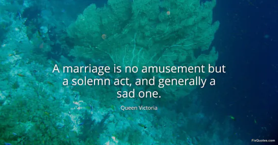 Victoria, Queen. "A marriage is no amusement but a solemn act, and generally a sad one." FixQuotes. January 15, 2026. https://fixquotes.com/quotes/a-marriage-is-no-amusement-but-a-solemn-act-and-15465/.