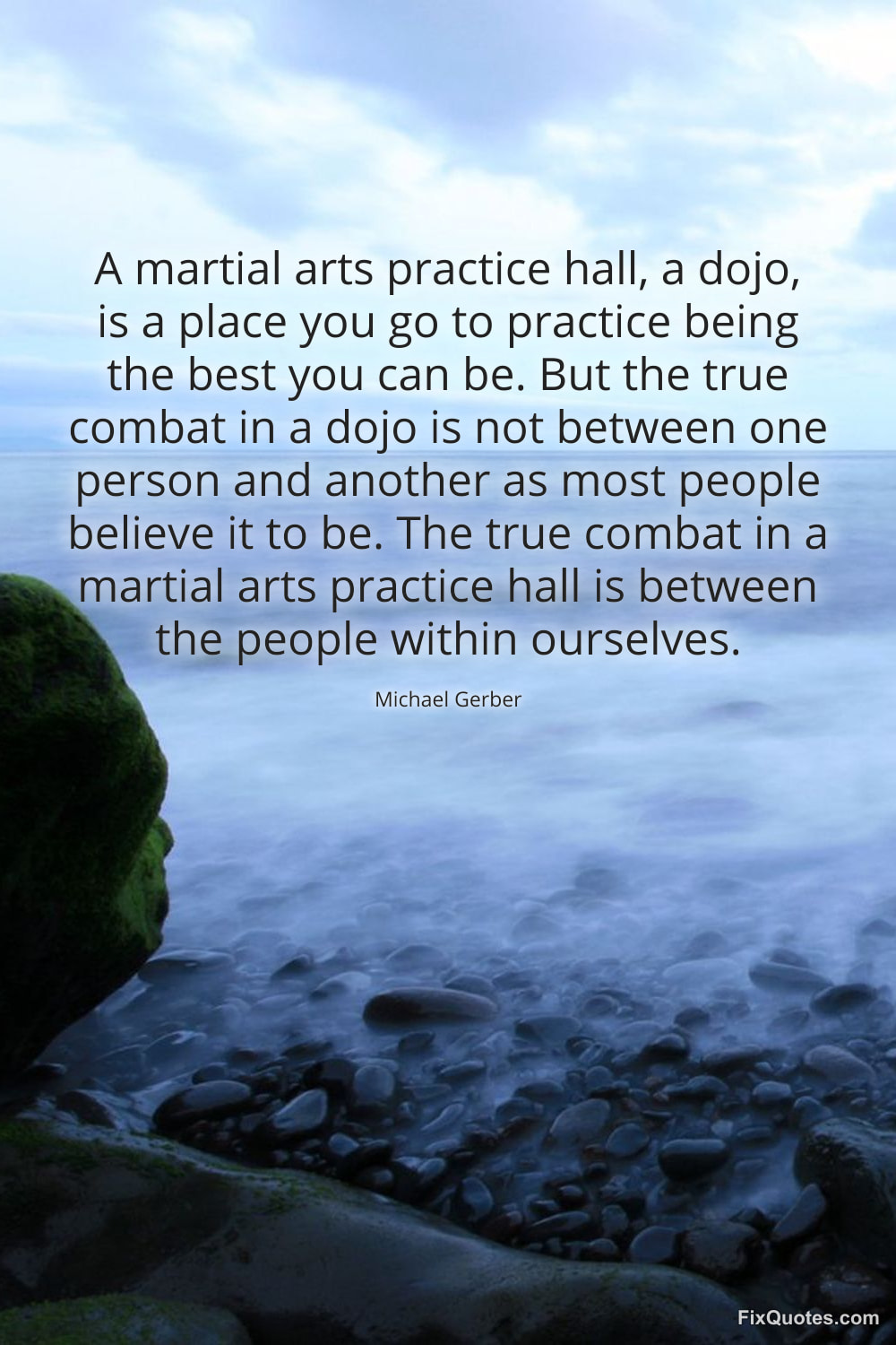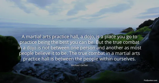 Gerber, Michael. (2026, February 5). A martial arts practice hall, a dojo, is a place you go to practice being the best you can be. But the true combat in a dojo is not between one person and another as most people believe it to be. The true combat in a martial arts practice hall is between the people within ourselves. FixQuotes. https://fixquotes.com/quotes/a-martial-arts-practice-hall-a-dojo-is-a-place-184951/