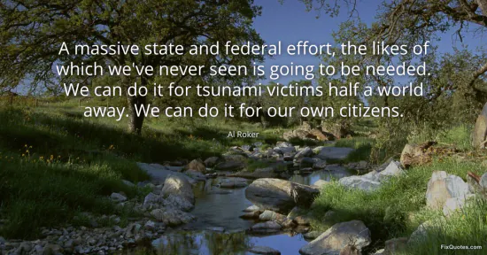 Roker, Al. (2026, January 17). A massive state and federal effort, the likes of which we've never seen is going to be needed. We can do it for tsunami victims half a world away. We can do it for our own citizens. FixQuotes. https://fixquotes.com/quotes/a-massive-state-and-federal-effort-the-likes-of-61626/