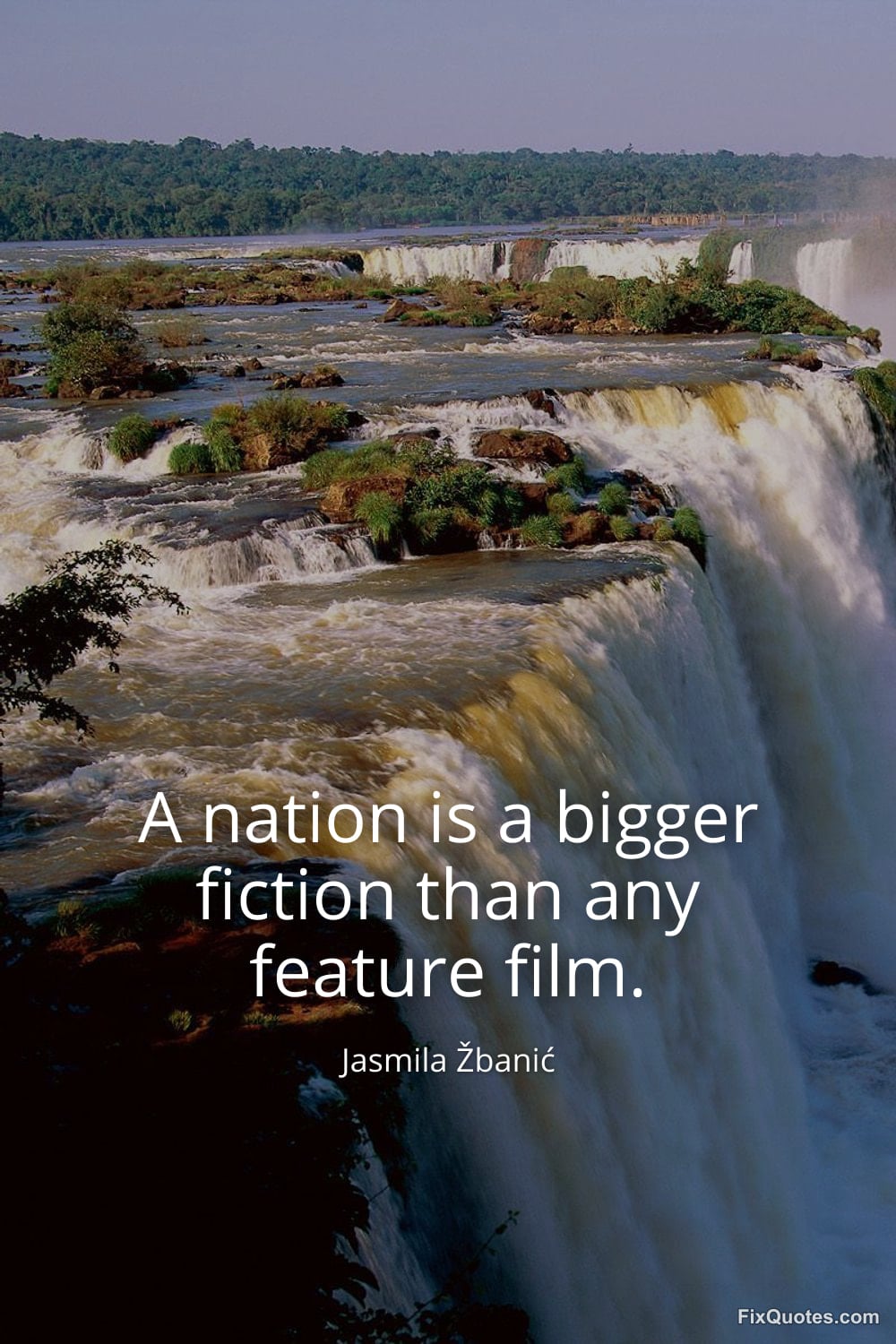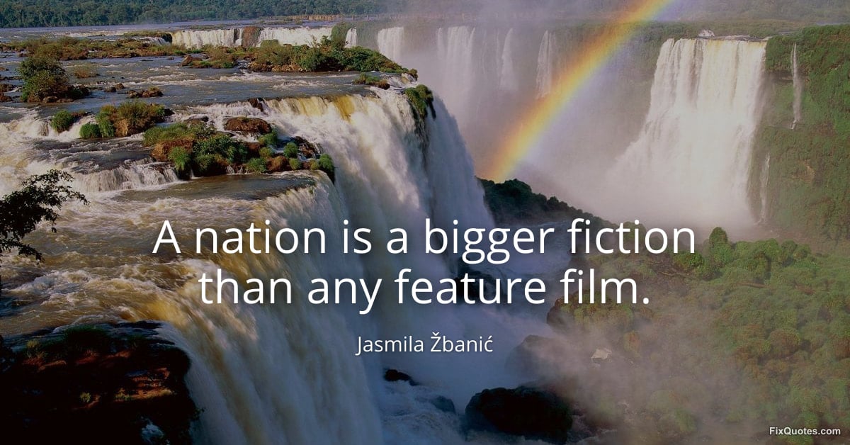 Žbanić, Jasmila. (2026, February 15). A nation is a bigger fiction than any feature film. FixQuotes. https://fixquotes.com/quotes/a-nation-is-a-bigger-fiction-than-any-feature-film-185409/