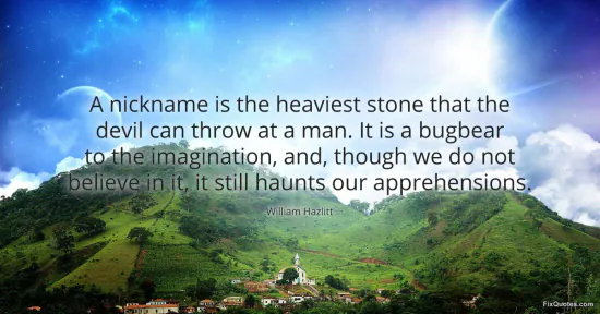 "A nickname is the heaviest stone that the devil can throw at a man. It is a bugbear to the imagination, and, though we do not believe in it, it still haunts our apprehensions"
