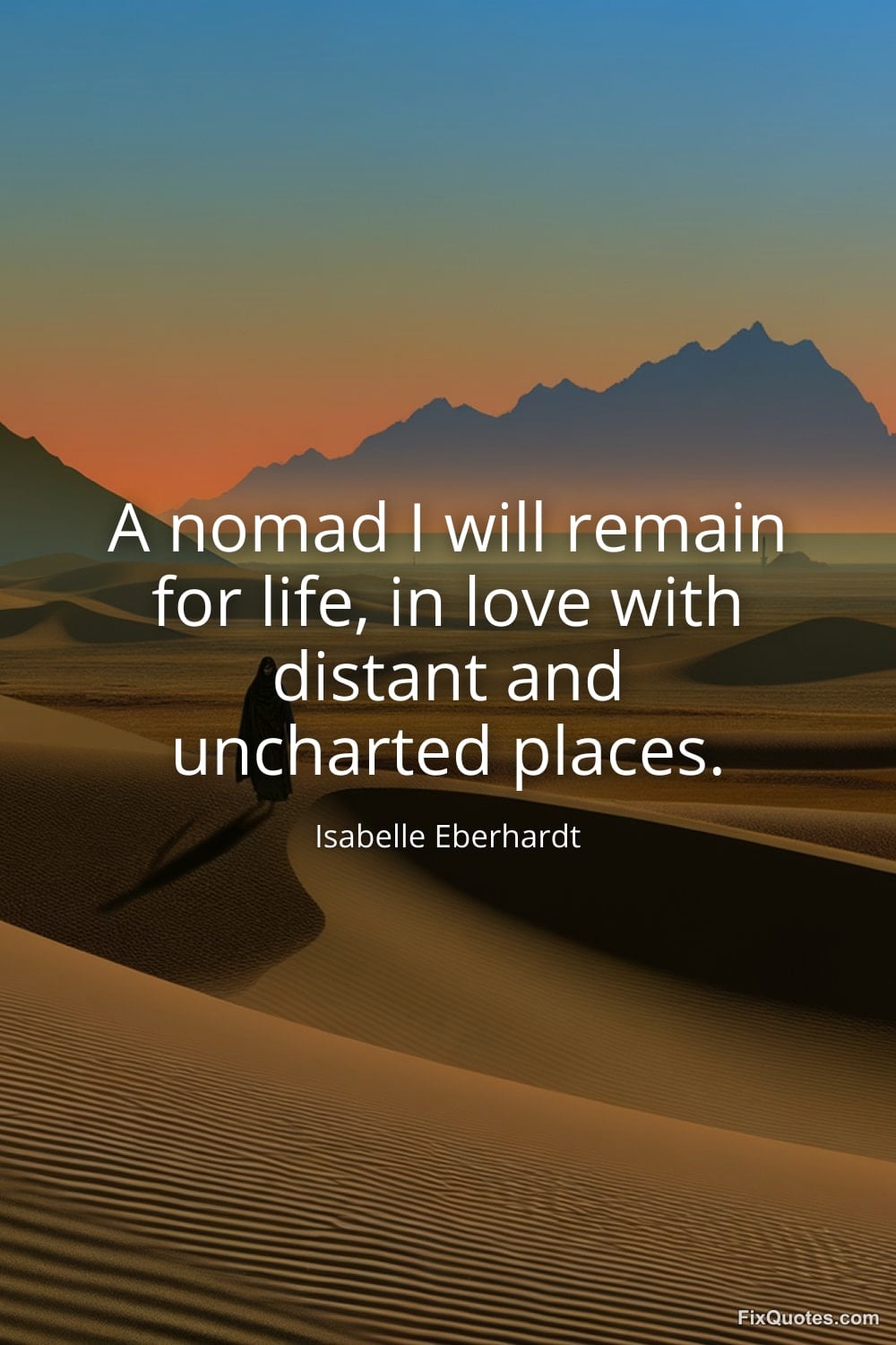 Eberhardt, Isabelle. (2026, February 7). A nomad I will remain for life, in love with distant and uncharted places. FixQuotes. https://fixquotes.com/quotes/a-nomad-i-will-remain-for-life-in-love-with-119484/
