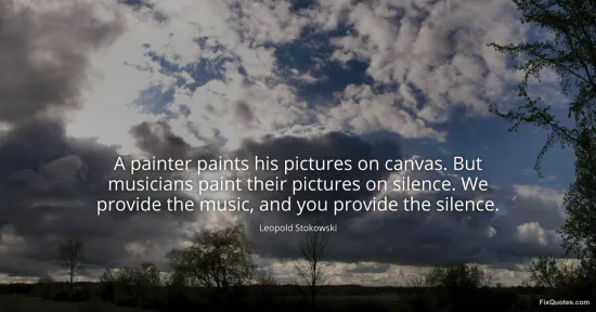 Stokowski, Leopold. (2026, January 14). A painter paints his pictures on canvas. But musicians paint their pictures on silence. We provide the music, and you provide the silence. FixQuotes. https://fixquotes.com/quotes/a-painter-paints-his-pictures-on-canvas-but-114187/