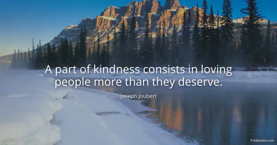 Joubert, Joseph. (2026, January 18). A part of kindness consists in loving people more than they deserve. FixQuotes. https://fixquotes.com/quotes/a-part-of-kindness-consists-in-loving-people-more-21287/