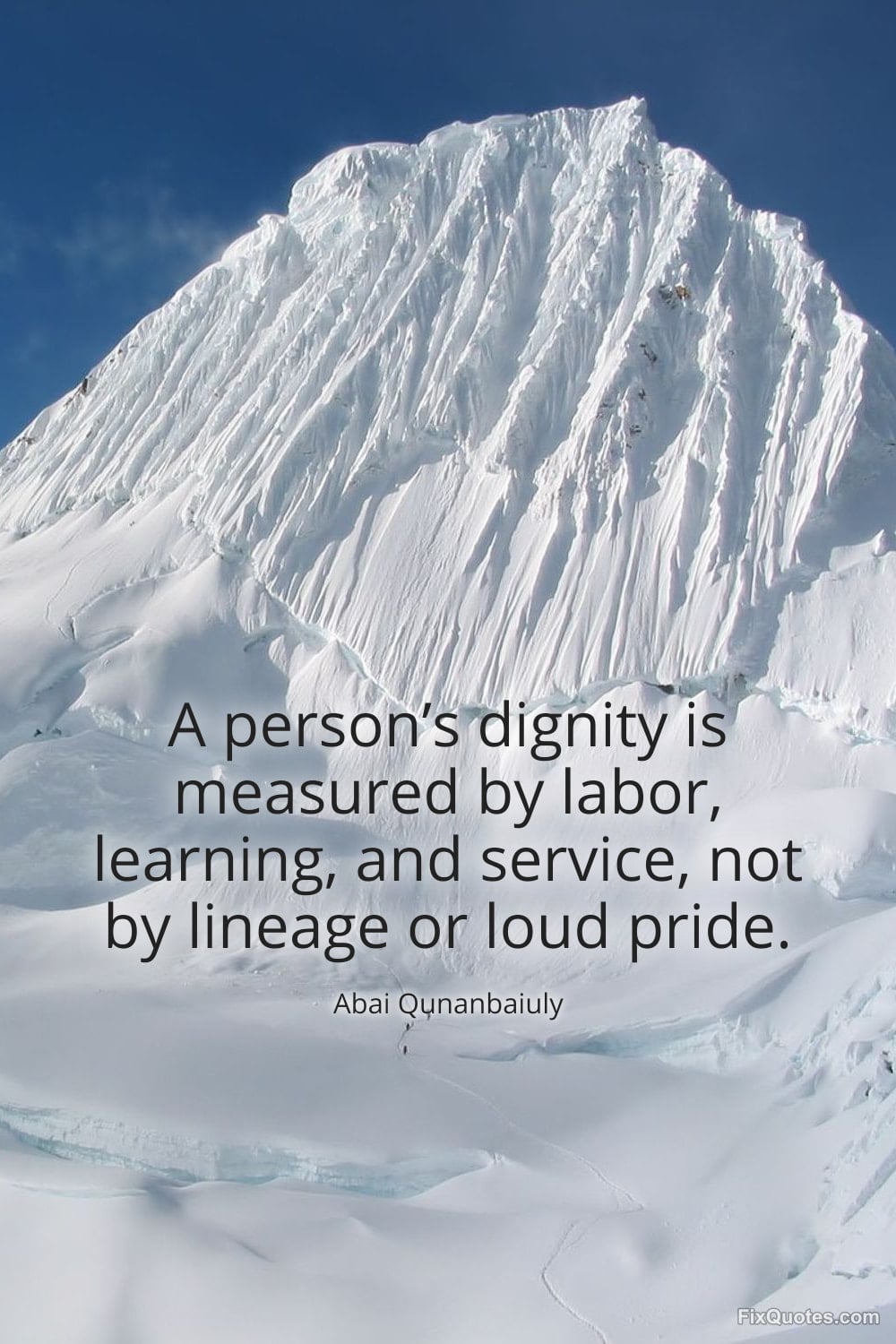 Qunanbaiuly, Abai. "A person’s dignity is measured by labor, learning, and service, not by lineage or loud pride." FixQuotes. February 14, 2026. https://fixquotes.com/quotes/a-persons-dignity-is-measured-by-labor-learning-185314/.