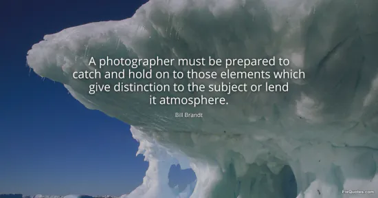 Brandt, Bill. "A photographer must be prepared to catch and hold on to those elements which give distinction to the subject or lend it atmosphere." FixQuotes. January 17, 2026. https://fixquotes.com/quotes/a-photographer-must-be-prepared-to-catch-and-hold-38488/.