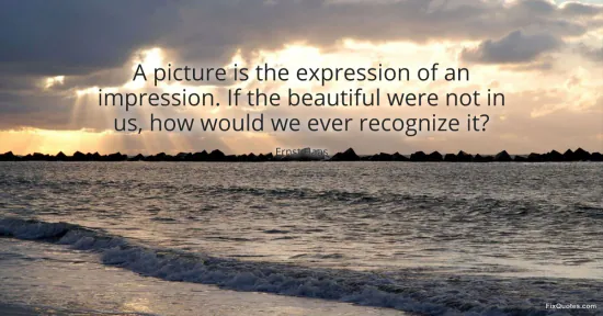 "A picture is the expression of an impression. If the beautiful were not in us, how would we ever recognize it?" FixQuotes, 17 Jan. 2026, https://fixquotes.com/quotes/a-picture-is-the-expression-of-an-impression-if-53571/. Accessed 13 Feb. 2026.