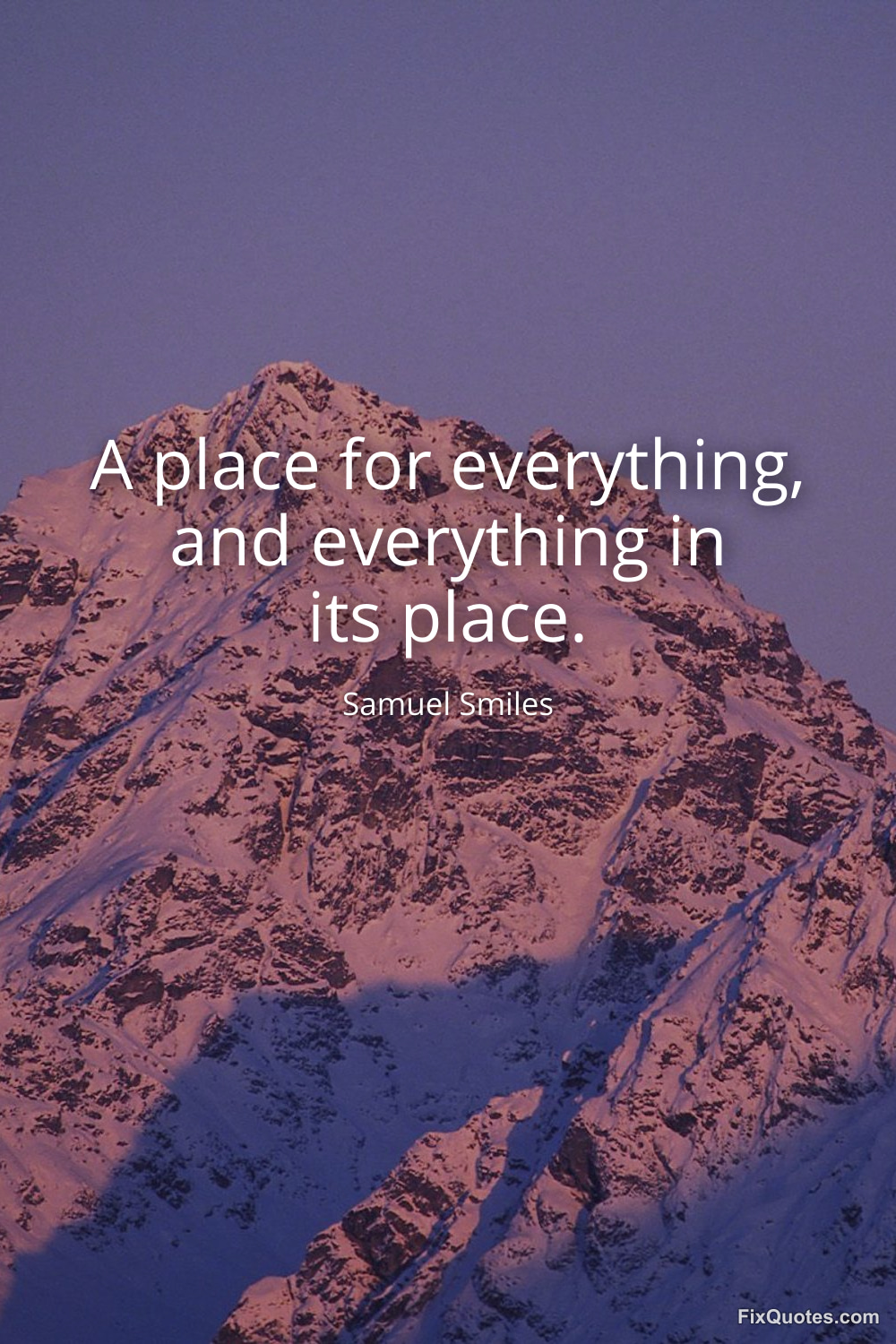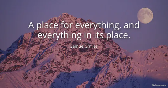 Smiles, Samuel. (2026, January 17). A place for everything, and everything in its place. FixQuotes. https://fixquotes.com/quotes/a-place-for-everything-and-everything-in-its-place-37052/