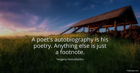 Yevtushenko, Yevgeny. (2026, January 16). A poet's autobiography is his poetry. Anything else is just a footnote. FixQuotes. https://fixquotes.com/quotes/a-poets-autobiography-is-his-poetry-anything-else-128952/