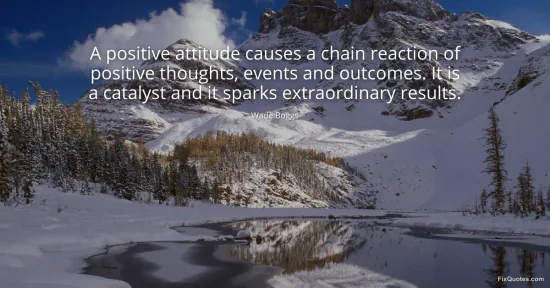 "A positive attitude causes a chain reaction of positive thoughts, events and outcomes. It is a catalyst and it sparks extraordinary results." FixQuotes, 15 Jan. 2026, https://fixquotes.com/quotes/a-positive-attitude-causes-a-chain-reaction-of-87019/. Accessed 12 Feb. 2026.