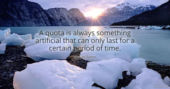 “A quota” lands here as both policy tool and political boogeyman: a word that suggests bureaucracy, distortion, and an outside hand on the scale. Jacques Santer’s line works because it smuggles a value judgment into a seemingly neutral observation. Calling quotas “artificial” doesn’t just describe them as constructed; it implies they’re unnatural, a meddling correction that violates how things are “supposed” to function. That single adjective quietly deputizes the market, tradition, or “merit” as the default truth, and casts intervention as temporary triage at best.