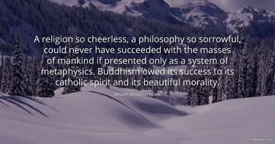 Reade, William Winwood. "A religion so cheerless, a philosophy so sorrowful, could never have succeeded with the masses of mankind if presented only as a system of metaphysics. Buddhism owed its success to its catholic spirit and its beautiful morality." FixQuotes. January 16, 2026. https://fixquotes.com/quotes/a-religion-so-cheerless-a-philosophy-so-sorrowful-98039/.