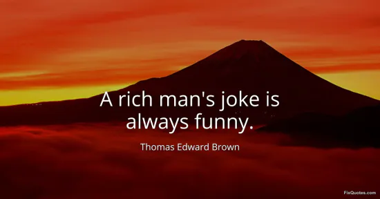 Brown, Thomas Edward. (2026, January 15). A rich man's joke is always funny. FixQuotes. https://fixquotes.com/quotes/a-rich-mans-joke-is-always-funny-77573/