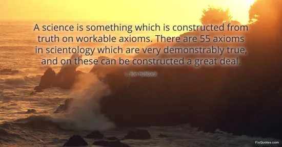 "A science is something which is constructed from truth on workable axioms. There are 55 axioms in scientology which are very demonstrably true, and on these can be constructed a great deal." FixQuotes, 17 Jan. 2026, https://fixquotes.com/quotes/a-science-is-something-which-is-constructed-from-64361/. Accessed 12 Feb. 2026.