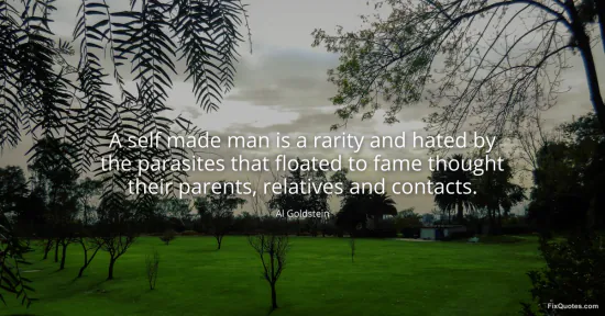 Goldstein, Al. "A self made man is a rarity and hated by the parasites that floated to fame thought their parents, relatives and contacts." FixQuotes. January 18, 2026. https://fixquotes.com/quotes/a-self-made-man-is-a-rarity-and-hated-by-the-8937/.