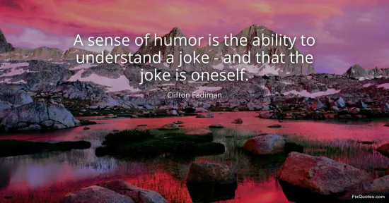 Fadiman, Clifton. (2026, January 16). A sense of humor is the ability to understand a joke - and that the joke is oneself. FixQuotes. https://fixquotes.com/quotes/a-sense-of-humor-is-the-ability-to-understand-a-137317/
